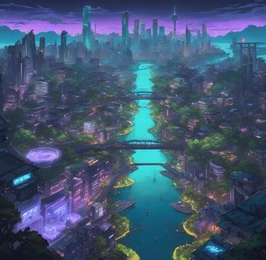 The canals serve as a main expressway and transport for goods to and from the A.K, with bridges that also connect the land masses together for foot and vehicular travel. Each island bears its own identity, often times its own culture. Before the city became the techno metropolis it is today, it was still a place of homage for many animals. Its abundant resources, strategic position to the ocean and majestic beauty are a tribute to its power. The land perfectly encompasses a majority of biomes necessary for many different animals to coexist peacefully.